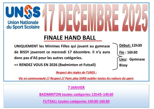 Par SYLVAIN FLEURY, publié le vendredi 13 décembre 2024 10:28 - Mis à jour le jeudi 11 décembre 2025 19:10Vous trouverez dans cette rubrique toutes les informations sur vos pratiques sportives à l'UNSS